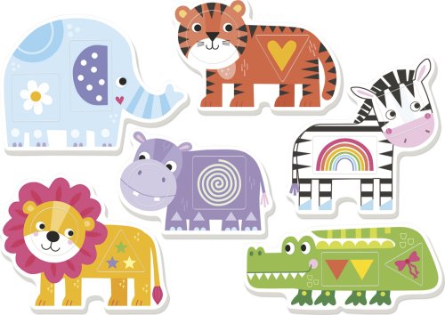 Hra na poznávání geometrických tvarů. Porovnávejte tvary, velikosti a naučte se rozpoznávat a rozlišovat základní geometrické tvary: čtverec, trojúhelník, kruh, obdélník. Rozvíjí pozornost, jemnou motoriku, zvídavost a představivost. Obsahuje 6 zvířátek se 2 základními propojenými tvary. Velké a silné dílky pro snadnější držení. Učení formou hry.