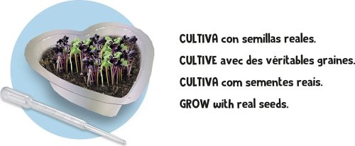 Obsah balení: dílky pro sestavení dekorace, květináč ve tvaru srdce, pipeta, balíček zeminy, obálka se semínky, návod k použití.