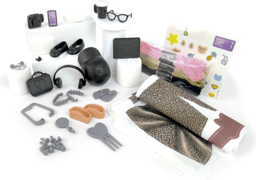 Balení obsahuje: sestavitelnou panenku, látku s předtištěnými střihy 61x32 cm, módní doplňky, bavlnky na vlasy, děrovač oděvů, příslušenství, obrázkový návod. Kreativní sady My Model Doll Design jsou rouzděleny podle různých témat: Módní ateliér, Oslava, Popová hvězda, Glam Chic, Svět fantazie a Ležérní styl.