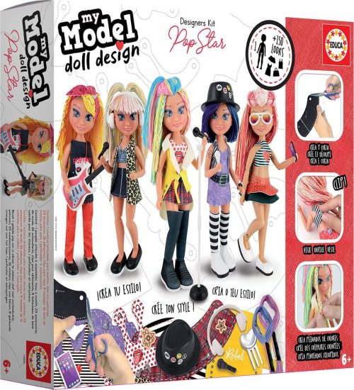 EDUCA My Model Doll Design je řada kreativních sad pro děti vytvořená speciálně tak, aby podporovala tvořivost a dětskou fantazii. Provází děti procesem představivosti a zábavnou formou posiluje rozvoj dětských schopností logicky uvažovat a dávat věci do souvislostí. Se sadou, která obsahuje vše potřebné k vytvoření oblečení ve stylu popové hvězdy na jakýkoli koncert nebo večírek, se stanete skvělými módními návrháři a stylisty.