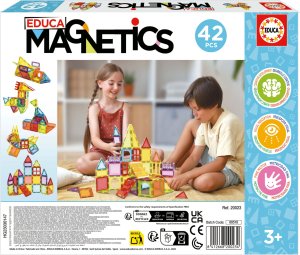 Představ si - postav - uč se! Kreativní magnetická stavebnice Magnetics od španělského výrobce EDUCA umožňuje sestavovat velké množství trojrozměrných objektů, pomocí dvourozměrných plastových mnohoúhelníků.