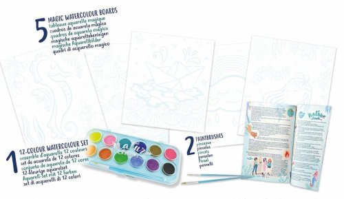 Sada obsahuje : 5 speciálních předloh, 12 vodových barev, 2 štětce Ilustrační video