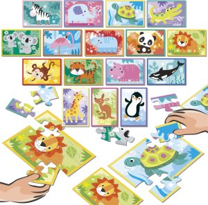 16 puzzle, každé s 9 dílky, 16 předlohových kartiček.