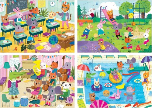 Progresivní dětské puzzle od španělské firmy EDUCA s různou obtížností, které děti zabaví na delší dobu. Čtyři samostatné puzzle o velikosti 28 x 20 cm, ale s různým počtem dílků (od 20 do 80), postupně vedou ke zdokonalování dítěte při skládání a zvyšování obtížnosti. Rozměr složeného puzzle cca 28 x 20 cm