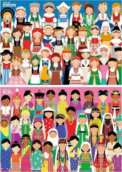 Balení obsahuje dvě puzzle se stejným počtem dílků a stejným rozměrem.
