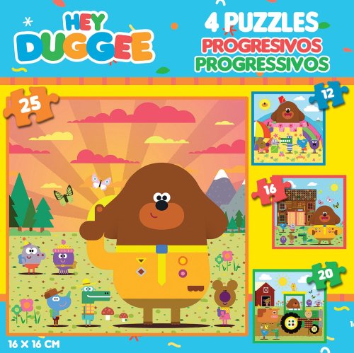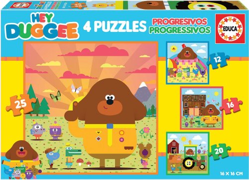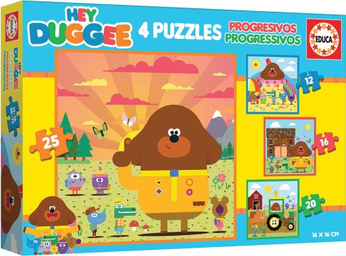 Progresivní puzzle s různou obtížností - 4 puzzle s 12 - 25 dílky, s vyšším počtem dílků se zmenšuje jejich velikost.