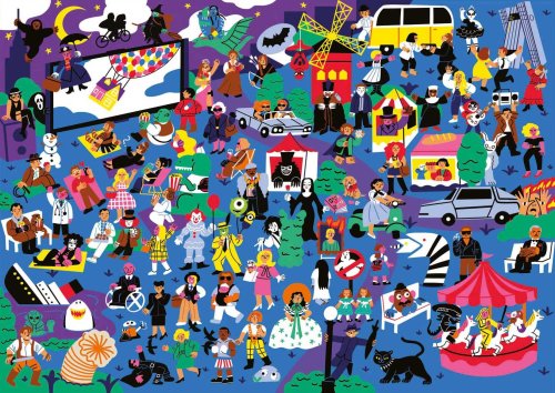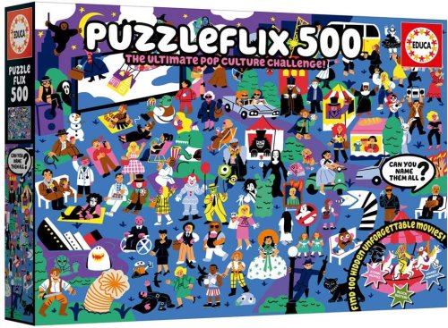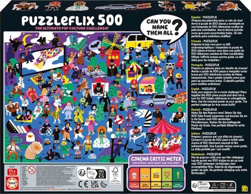 Sestavte puzzle o 500 dílcích a ponořte se do hledání 100 skrytých odkazů na nezapomenutelné filmy. Použijte přiložený plakát jako průvodce. Perfektní výzva pro skutečné filmové nadšence.
