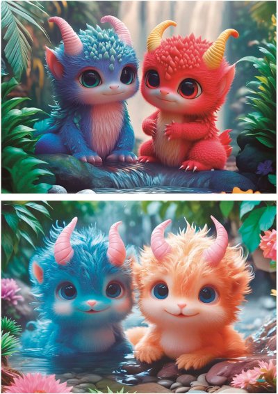 Balení obsahuje dvě puzzle se stejným počtem dílků a stejným rozměrem. Rozměr složeného puzzle cca 40 x 28 cm