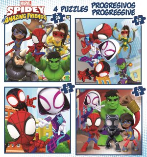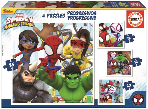 Progresivní puzzle s různou obtížností - 4 puzzle s 12 - 25 dílky, s vyšším počtem dílků se zmenšuje jejich velikost.