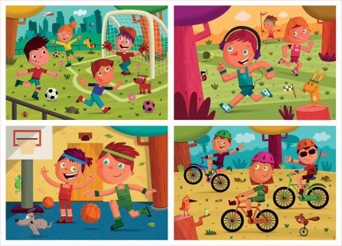 Progresivní dětské puzzle od španělské firmy EDUCA s různou obtížností, které děti zabaví na delší dobu. Čtyři samostatné puzzle o velikosti 28 x 20 cm, ale s různým počtem dílků (od 20 do 80), postupně vedou ke zdokonalování dítěte při skládání a zvyšování obtížnosti. Rozměr složeného puzzle cca 28 x 20 cm