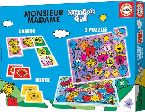 EDUCA SuperPack 4v1 - to je skvělá zábava nejen pro děti! V jedné krabici najdete dvě puzzle (každé s 25 dílky), domino a pexeso. Rozměr složeného puzzle cca 32 x 24 cm