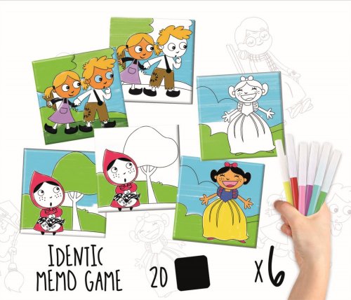 Zábavná hra pro děti Pexeso s černobílými obrázky pohádkových příběhů z kolekce Colouring Activities . Dříve, než začnete hrát Vaši oblíbenou hru - vybarvěte si kartičky podle vlastní fantazie! Pexeso by nemělo chybět v žádné domácnosti s dětmi. Hraní pexesa je pro děti zábavné a procvičuje postřeh a paměť. Balení obsahuje 10 dvojic obrázků a 6 fixů základních barev. Vhodné pro děti od 4 let.