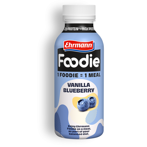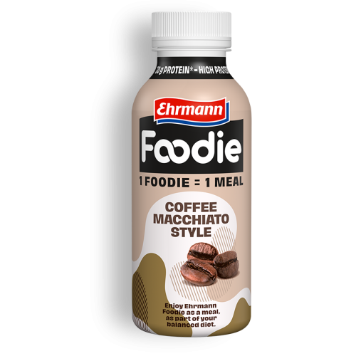 1 Foodie = 1 jídlo. Ehrmann Foodie je lahodné jídlo v podobě nápoje s důležitými živinami, které vaše tělo potřebuje. Láhev o obsahu 400 ml obsahuje 30 g bílkovin, neobsahuje laktózu, lepek a přidané cukry*.