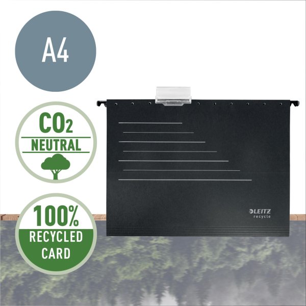 • Tyto pevné a odolné závěsné desky výtečně zapadají mezi ostatní ekologické výrobky značky Leitz. Moderní a ekologické kancelářské výrobky vypadají dobře nejen v klasické kanceláři, ale i doma. S novými ekologickými výrobky společnosti Leitz můžete nejen vylepšit své pracovní prostředí, ale také přispět ke zlepšení prostředí naší planety.