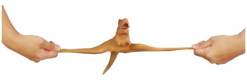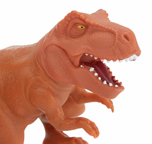 Hnědý Tyrannosaurus Rex je vyroben z pevného a velmi pružného materiálu, který lze natáhnout do ohromných rozměrů. Dinosaura můžeš roztahovat stále dokola, vždy se vrátí do původního tvaru.
