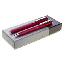 Dárková sada s červenou propiskou a rollerem v dárkové papírové krabičce.