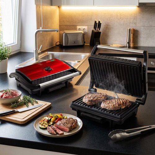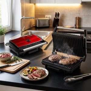 - výkon: : 1500 W- 220-240 V 50/60 Hz- nepřilnavý povrch grilovacích desek- světelný indikátor provozu- nastavitelný termostat- materiál: nerezová ocel / plast- barva: burgundy metalická- může být používán …