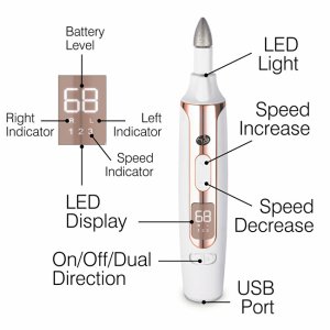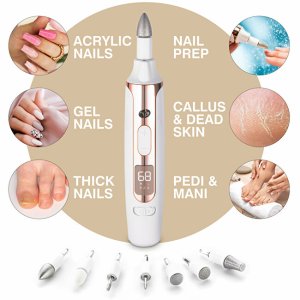 Multifunkční elektrický pilník nabízí 7 výkonných nástavců, tři rychlosti, oboustranný chod a digitální displej, který poskytuje úplnou kontrolu nad péčí o vaše nehty. Ideální pro tvarování, vyhlazování a leštění přírodních i umělých nehtů.