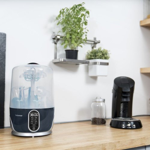 95°C přírodní páry uvolňované přístrojem Turbo Pure eliminuje i ty nejvíce odolné bakterie (99%), pachy a nánosy vápníku z mléka. Parní ramena (tmavě zelená) jsou odnímatelná, což umožňuje snadné rozmístění lahví a příslušenství. Můžete najednou sušit až 6 dětských lahví, savičky, odsávačky a další příslušenství kompatibilní se sterilizací. Díky cyklu all-in-one (sterilizace + sušení), jsou všechny vaše potřeby vyčištěny a vysušeny bez potřeby manipulace či přenosu, což představuje malé nebo nulové riziko vnějšího znečištění.