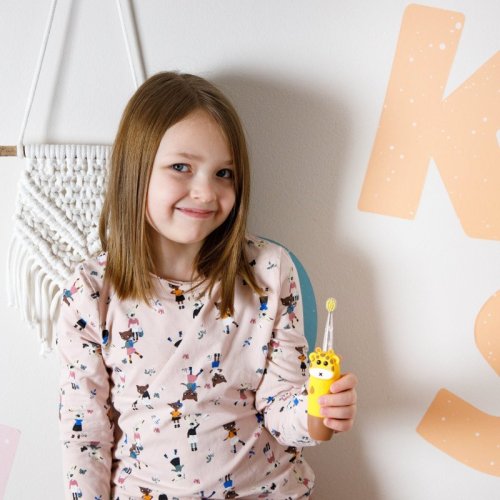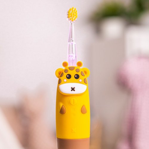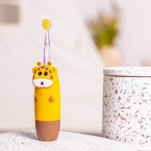 Sonický zubní kartáček pro děti v podobě roztomilé žirafky podporující návyk správného čištění již od útlého věku.