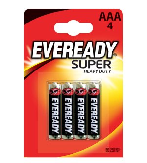 EVEREADY Super je zinkovo-chloridová baterie určená pro každodenní použití do spotřebičů s nenáročným odběrem energie, jako např. rádio, budík, hodiny.
