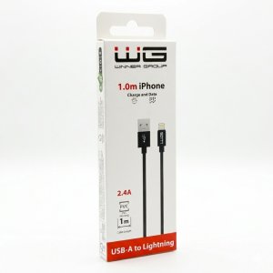 Nabíjecí a synchronizační kabel WG pro zařízení se slotem Lightning umožňující souběžný přenos dat a rychlé dobíjení baterie.V nenápadné černé barvě.S konektory USB-A a Lightning, nabíjecí proud 2,4 …