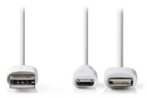 Nedis USB na micro USB a Lightning bílý; Nabíjecí a synchronizační kabel pro většinu mobilních zařízení.