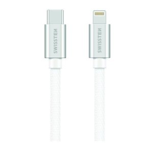 SWISSTEN USB-C 2.0 na Lightning 1,2 m; Kabel s kvalitním textilním opletením vhodný pro připojení zařízení s konektorem Apple Lightning k počítači s konektorem USB-C.