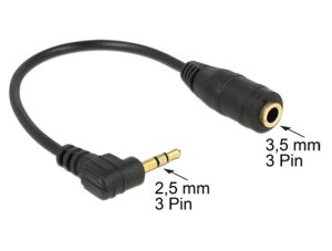 Tento krátký stereo kabel od Delocku umožňuje změnit 2,5 mm stereo jack samici na port samice 3.5 mm.