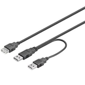 USB kabel se zdvojeným napájením 2x USB A(M) - USB A(F) pro posílení napájení a připojení netypických zařízení.