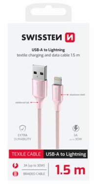 SWISSTEN DATOVÝ KABEL TEXTILE II USB-C / LIGHTNING 1,5 M RŮŽOVÝ Hledáte praktický a ohebný kabel z příjemného textilního materiálu?