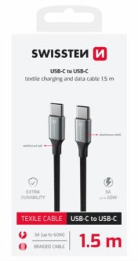 SWISSTEN KEVLAR USB-C na USB-C 1,5 m; Opletený USB-C kabel vyztužený kevlarem nabízí extrémní odolnost proti zalomení a poškození.