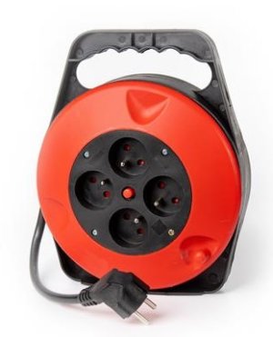 Navíjecí buben 25 m, 3 x 1,5 mm, 4 zásuvky, IP44, guma. délka: 25 m počet zásuvek: 4 vypínač: tepelná pojistka barva: černá napětí / proud: 250 V / 16 A max. při rozvinutí / 5 A navinutí typ izolace: …