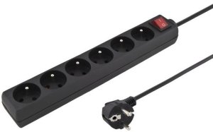 - prodlužovací přívod se šesti zásuvkami a vypínačem - německý standard zásuvek schuko (zemnící kontakty na okraji), vhodné pro běžně používané unischuko vidlice (nevhodné pro starší kulaté vidlice bez …