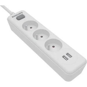 Prodlužovací kabel Philips SPN3032WA/60 Klasický prodlužovací kabel 3 AC zásuvky 2 USB-A zásuvky Délka kabelu 2m Hlavní vypínač napájení Bezpečnostní ochrana - dětská závěrka Bílá barva