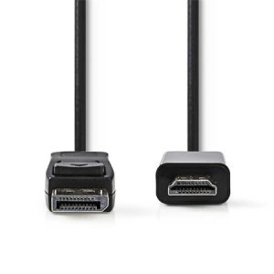 LANBERG DISPLAYPORT(M) V1.1 ->HDMI(M) KABEL 1,8M ČERNÝ Kabel Displayport-HDMI je ideální způsob, jak připojit zařízení vybavená Displayportem k monitorům vybaveným HDMI.