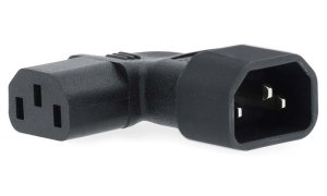 Nedis adaptér IEC-320-C13 na IEC-320-C14 úhlový; Úhlový napájecí adaptér z IEC-320-C13 na IEC-320-C14 v levém úhlu .