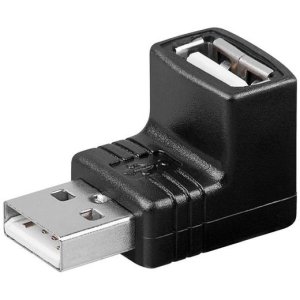 Redukce pro zapojení kabelu USB A Male do USB A Female portu, standardní USB2.0, pro připojení kabelů i do hůře přístupných míst, barva černá.