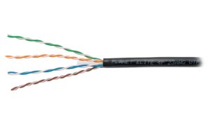 Venkovní kabel UTP nestíněný Cat,5e černý, 4 páry žil, double jacket = dvojitý PVC obal (dvojitá bužírka) chráněn proti UV záření, proti extrémním teplotám:-40 až + 70 °C Dřevěná cívka Instalační kabel …