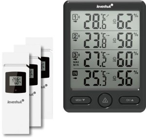 Termohygrometr = teploměr a vlhkoměr v 1 zařízení, přístroj přesně změří teplotu i vlhkost ovzduší, integrovaný LCD displej zobrazuje aktuální čas a datum i předpověď počasí, 3 možnosti montáže – stůl, …