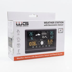- 2dílný set: základna + bezdrátový senzor; barevný displej, intuitivní ovládání, 5 dotykových tlačítek - digitální zobrazení času, data, teploty, vlhkosti a tlaku vzduchu, předpovědi počasí a fáze měsíce …