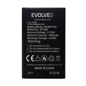 Originální baterie EVOLVEO Určena pro mobilní telefony: EVOLVEO EasyPhone XG (PartNo: EP-650) • Kapacita 1000mAh • Typ baterie: Li-Ion Obsah balení: • Baterie