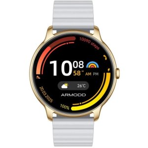 Chytré hodinky ARMODD Slim zlatá Úhlopříčka: 1,32# Rozlišení: 466 × 466 px Typ displeje: AMOLED Tvar: Kulatý Materiál řemínku: Kov Kompatibilní s OS: Android, iOS Notifikace: Hovor, SMS, Sociální sítě, …