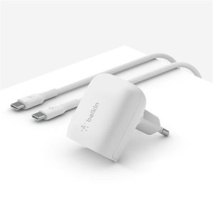 Bezpečně rychle nabijte iPhone, iPad, Samsung Galaxy nebo jiné kompatibilní zařízení s naší výkonnou 20W nástěnnou nabíječkou USB-C připravenou na cesty.