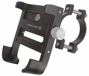 SWISSTEN BM1; Držák navržený pro pevné a bezpečné uchycení mobilních telefonů o velikosti 4" až 7" (šířka 55–100 mm) na řídítka kola či motocyklu.