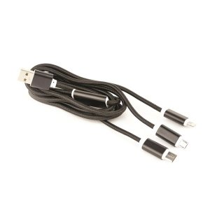 Opletený microUSB kabel ideální k dobíjení telefonu Combo kabely se 3 typy bežně používaných koncovek Lisované konektory: USB AM, Micro USB, Lightning a Type-C Délka: 1m