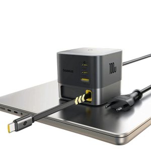 *Super Gan Baseus stolní nabíječka 2 porty typu c + 1 port USB nabíjecí stanice se 100w zatahovacím kabelem typu c - zástrčka / černá *režim nízkého proudu: speciální péče pro sluchátka, chytré hodinky …