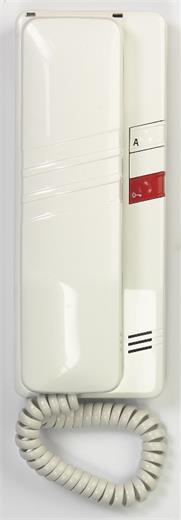 Domácí nástěnný telefon se sluchátkem je určený pro dorozumívací audiosystém 4+n v obytných domech a institucích má elektronické vyzvánění - 1+1 aktivní tlačítko (zvonek a protistanice).