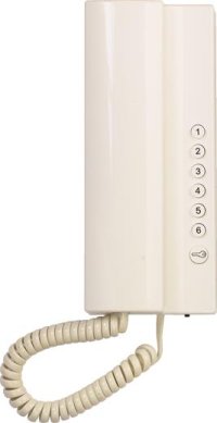 Domácí nástěnný telefon se sluchátkem slouží pro dorozumívací audiosystém 4+n v obytných domech a institucích má elektronické vyzvánění - 1 aktivní tlačítko (zvonek).
