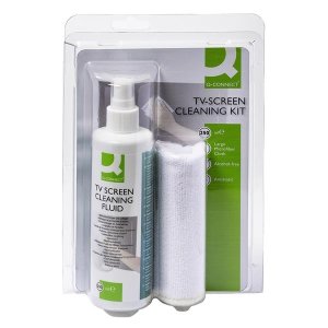 Sada na čištění obrazovek a klávesnic PC značky Q-Connect Obsahuje: 150 ml sprej, suché/mokré ubrousky, láhev 125 ml čisticího roztoku na obrazovky a suché absorpční kapesníčky